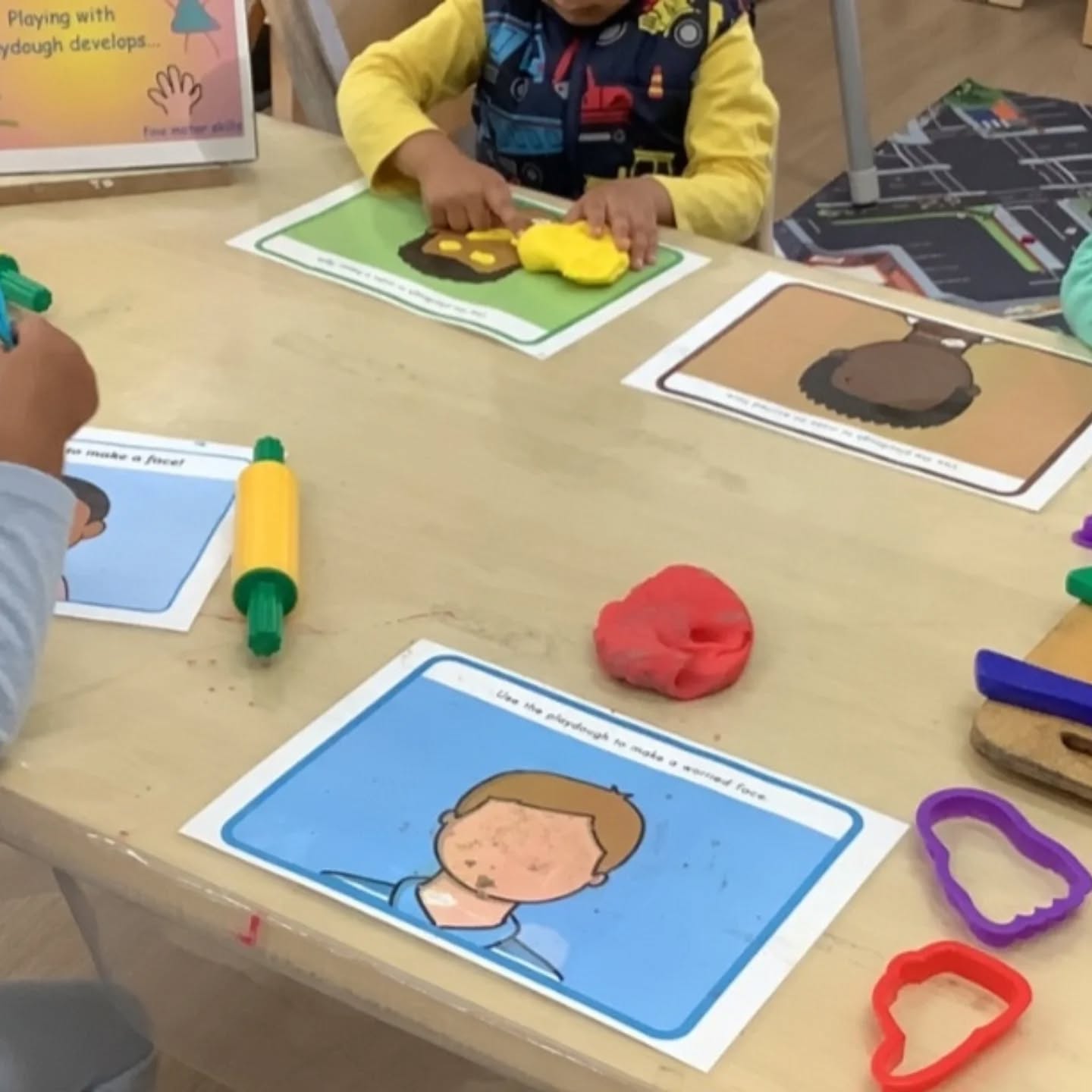 Using playdough mats, the children were encouraged to shape, mould, and express their feelings through hands-on play