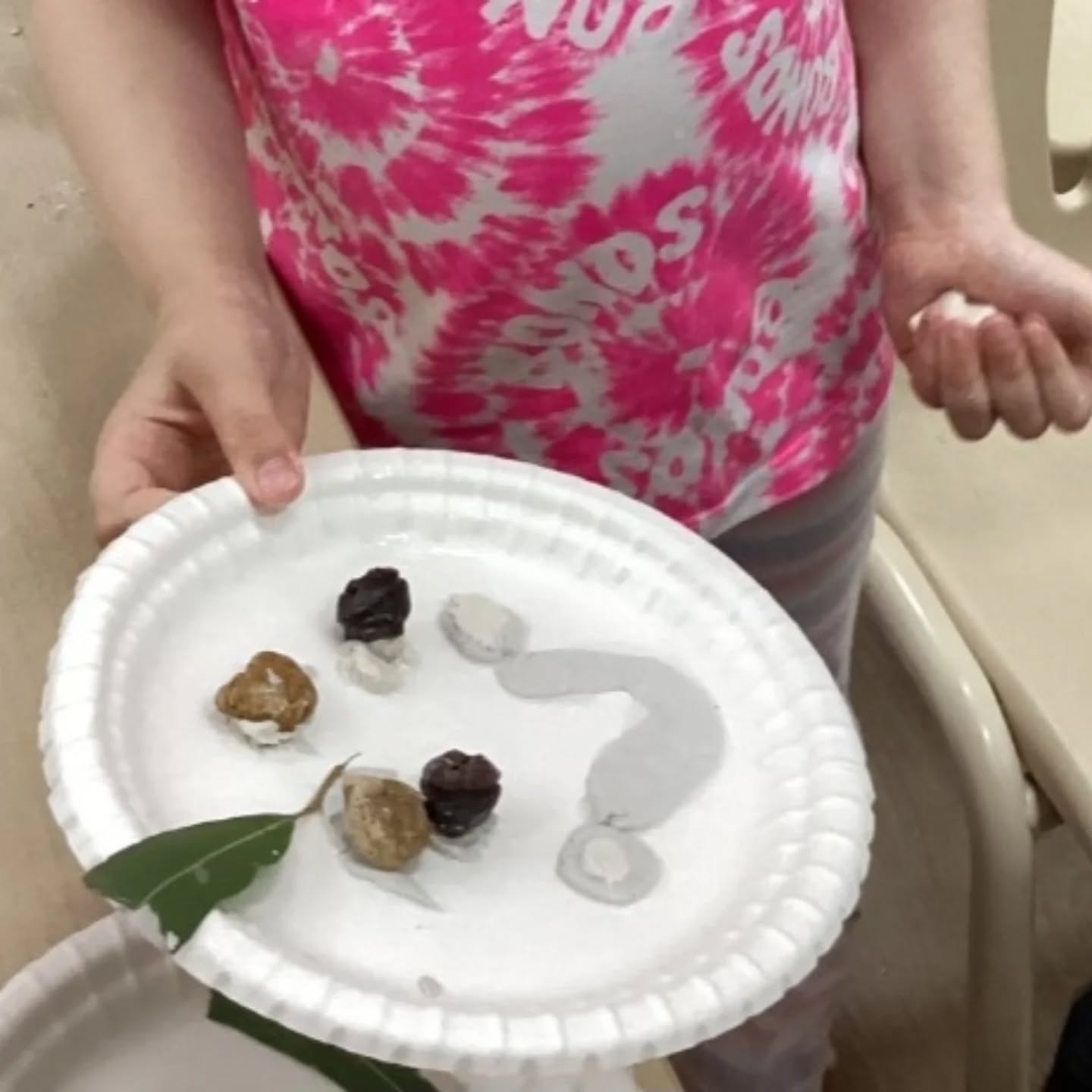 – Asya creatively used gum nuts and leaves to design her face