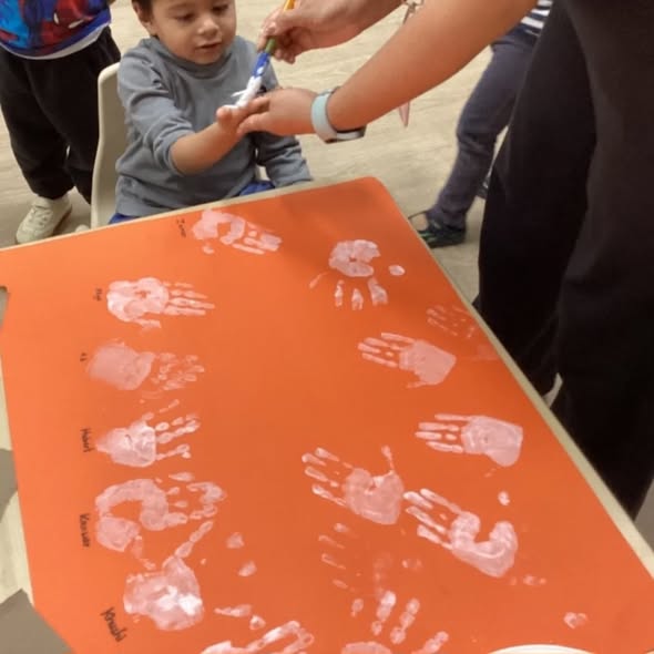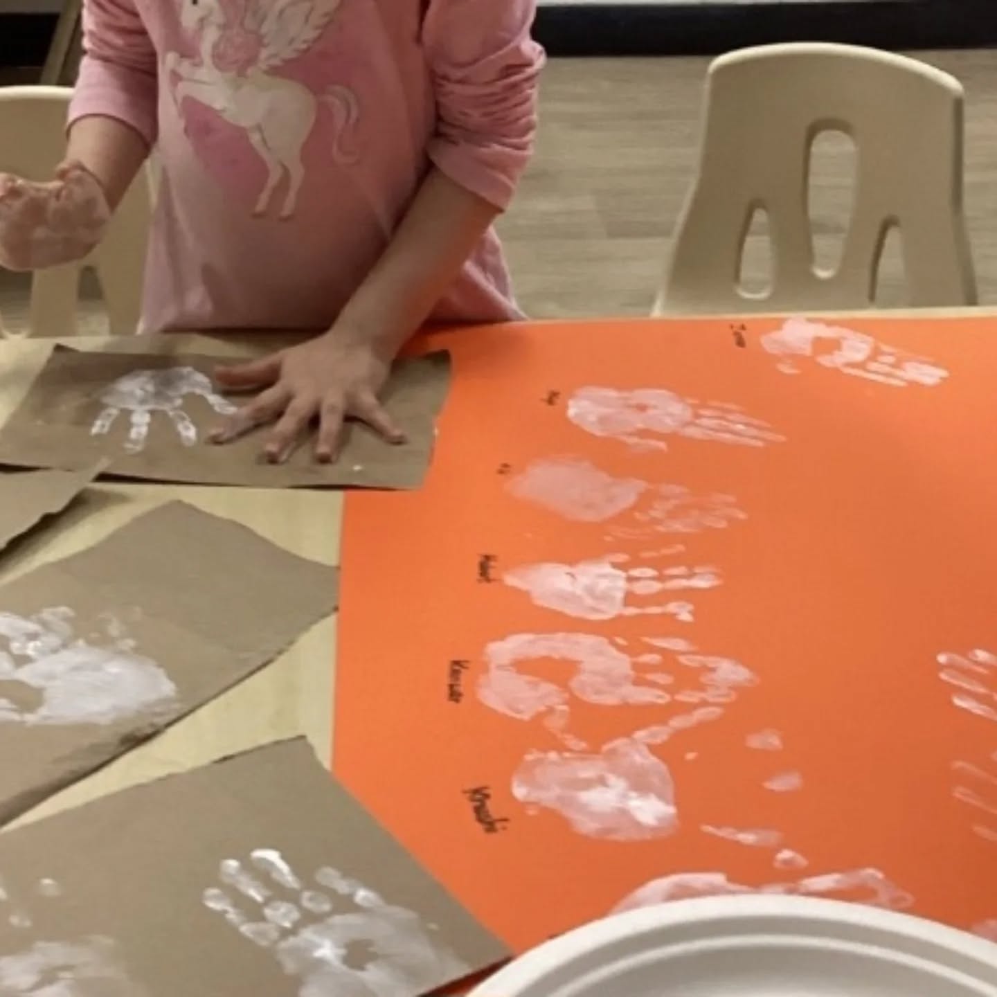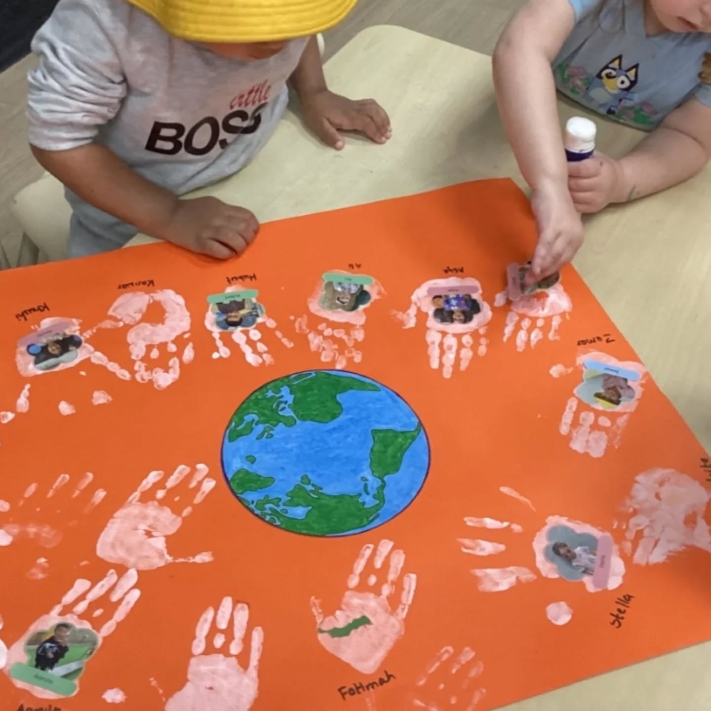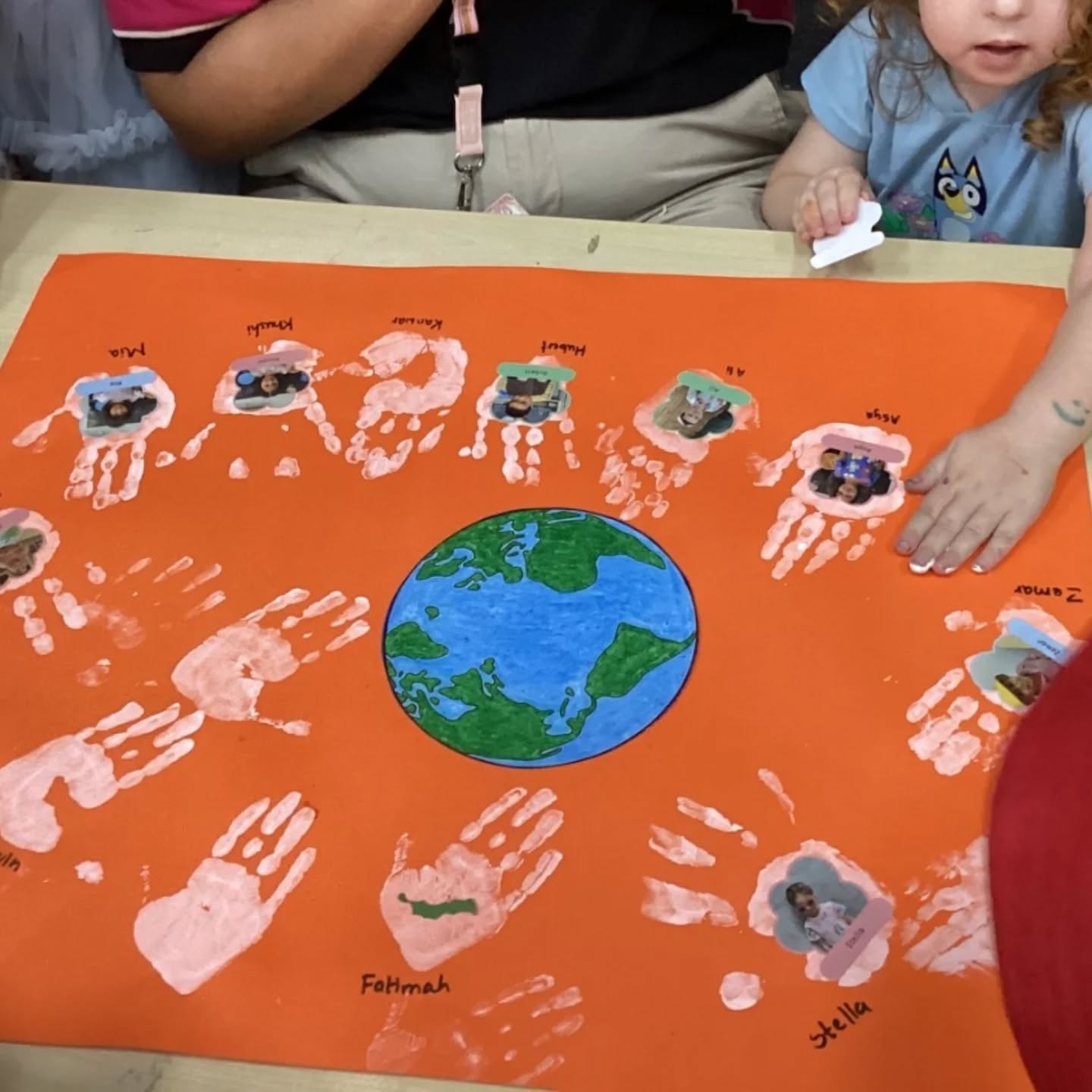 After group time, children worked together to create a beautiful “Everyone Belongs” poster using hand painting