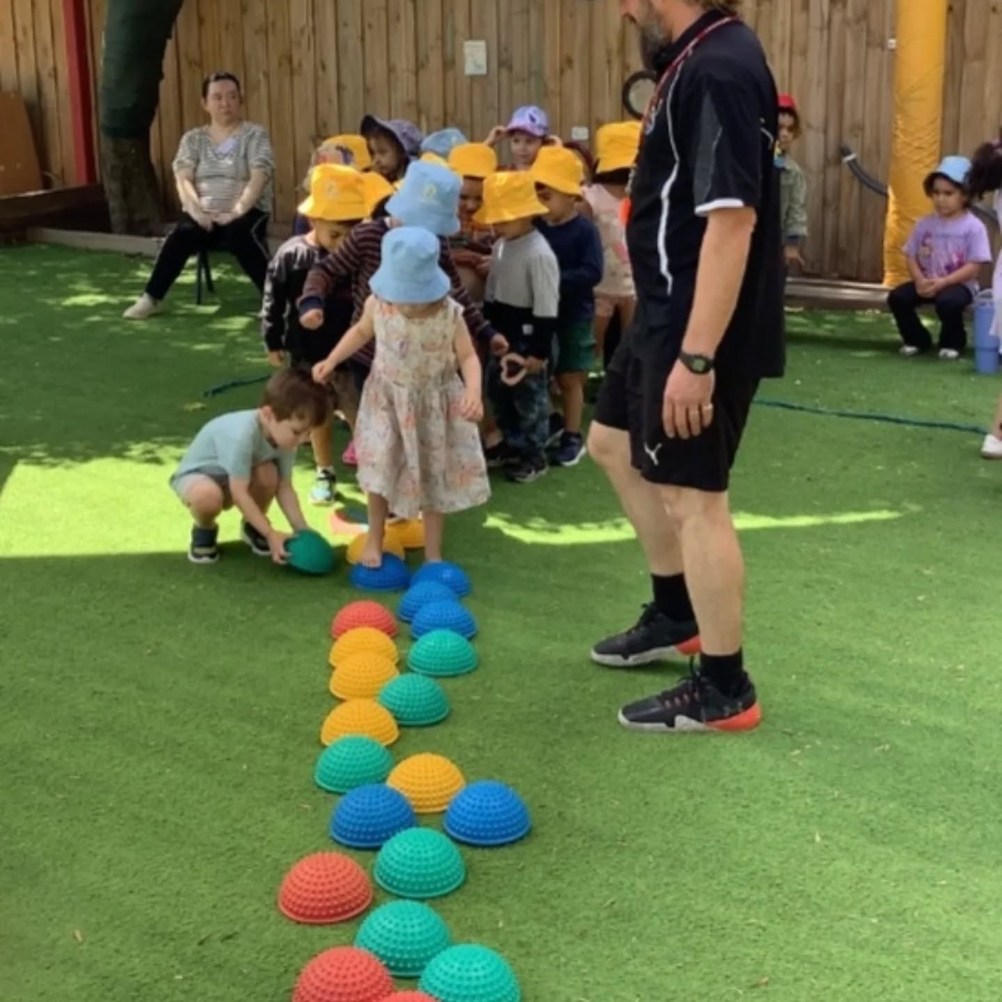 Today was an exciting day in our Kinder room as we welcomed Don for our very first sports incursion of the year! The children were absolutely thrilled to see all the colourful sports equipment he brought along – curiosity and excitement filled the room from the very start.