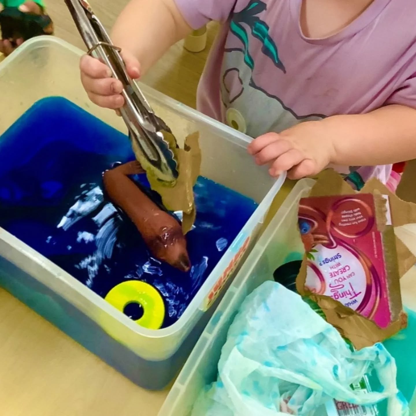 Our toddlers participated in Clean Up Australia Day and learned about the importance of caring for our environment . Educators discussed what happens when rubbish is thrown on the ground. The children learned that garbage can end up in our oceans and make sea animals sick